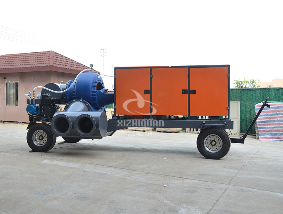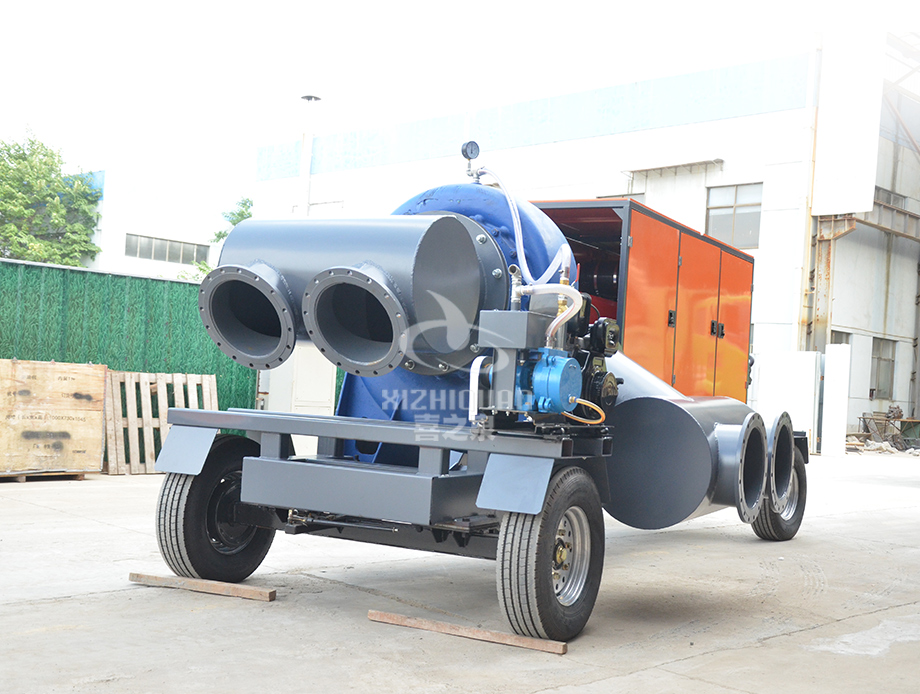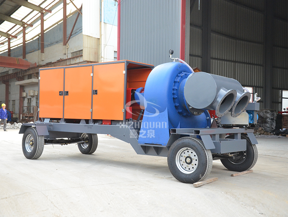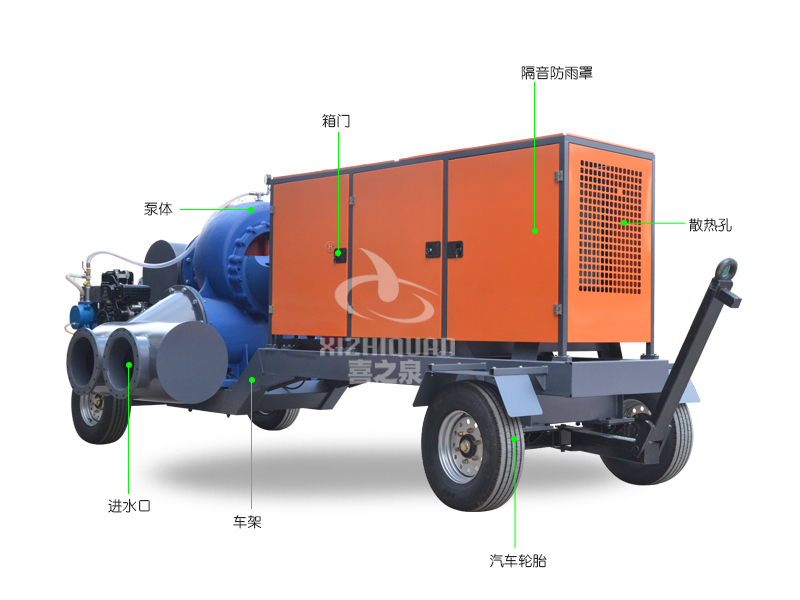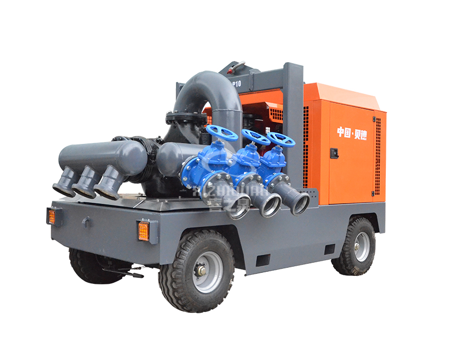 大流量移動(dòng)泵車又叫柴油機(jī)自吸泵組,是集自吸與無堵塞排污泵于一體的柴油機(jī)自吸泵機(jī)組,采用的是柴油機(jī)驅(qū)動(dòng)軸向回流外混式,通過泵及葉輪流道的獨(dú)特設(shè)計(jì),使用時(shí)不需安裝底閥及灌引水。混流式移動(dòng)泵車可以吸排具有大顆粒固體和長(zhǎng)纖維等雜志的液體,被廣泛應(yīng)用于市政排污及抗旱防汛工程中和農(nóng)業(yè)灌溉、工業(yè)排污、自來水廠緊急吸排水等方面。