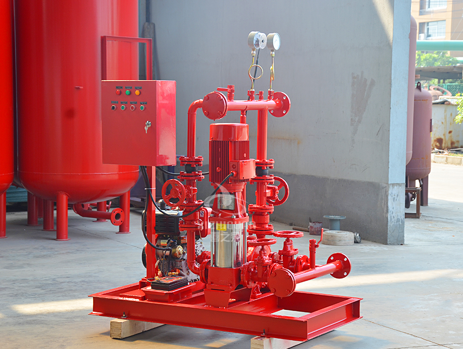 2.在市電正常時電動泵組投入工作,當供電出現故障,電動消防泵不能正常投入使用時,柴油機消防泵組能自動投入運轉確保消防滅火正常進行,柴油機消防泵組配置各種自動功能,滿足標準的要求,保證設備長期正常待機狀態,隨時投入滅火工作。