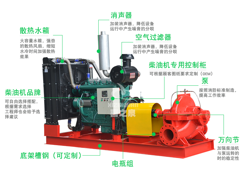 XBC-S柴油機(jī)消防泵組是上海喜之泉泵閥有限公司嚴(yán)格安裝標(biāo)準(zhǔn)GB6245消防泵性能要求和試驗(yàn)方法等標(biāo)準(zhǔn)研制開(kāi)發(fā)的一種新型消防設(shè)備,該系列設(shè)備按所配用的消防泵(單級(jí)單吸式、單級(jí)雙吸式、節(jié)段多級(jí)式)可分為XBC-IS、XBC-S、XBC-D等三個(gè)子系列,設(shè)備壓力、流量范圍廣,其應(yīng)用幾乎能滿足消防所需的各種場(chǎng)合。設(shè)備所配柴油機(jī)均采用國(guó)產(chǎn)或產(chǎn)品,具有啟動(dòng)特性好、過(guò)載能力強(qiáng)、結(jié)構(gòu)緊湊、維修方便、使用簡(jiǎn)單、自動(dòng)化程度高等特點(diǎn),是一種先進(jìn)、性能可靠的消防設(shè)備。并獲得消防產(chǎn)品3CF認(rèn)證證書。