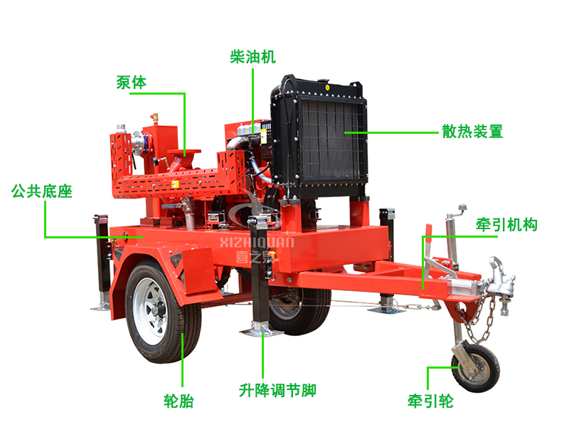 雙軸式移動泵車是由泵體和葉輪流道采用軸向回流外混式原理的獨特設計設計而成,即可像一般的自吸清水泵那樣無需安裝底閥和灌引水
