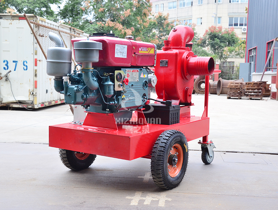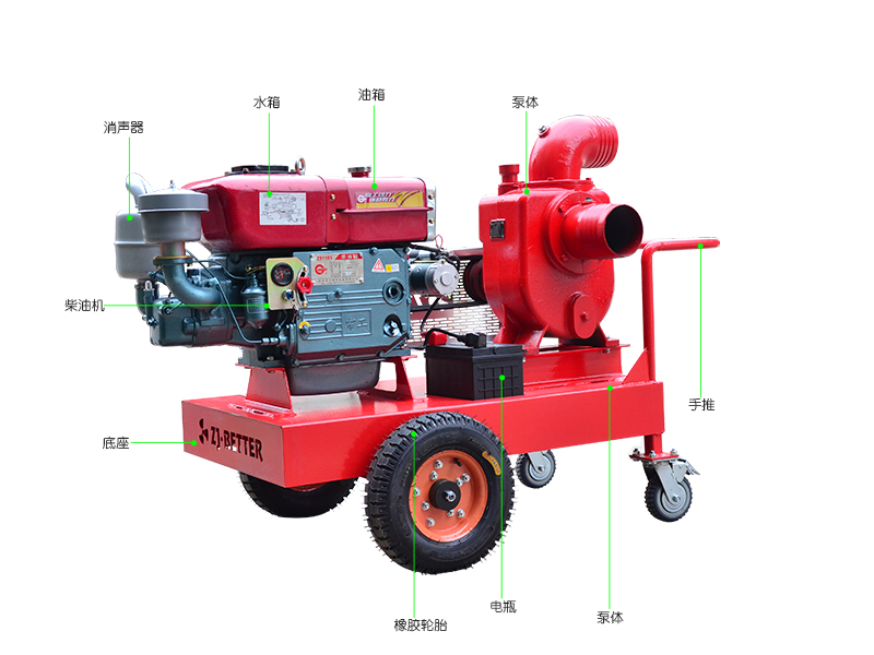 單缸柴油機自吸消防泵,手推式單缸柴油機消防泵的結構類型很多,其中,外混式另一方面,被葉輪排到氣水分離室中的水又經左右回水孔流回到葉輪外緣