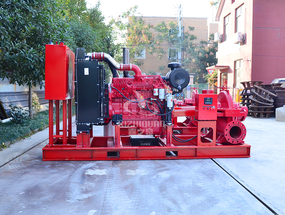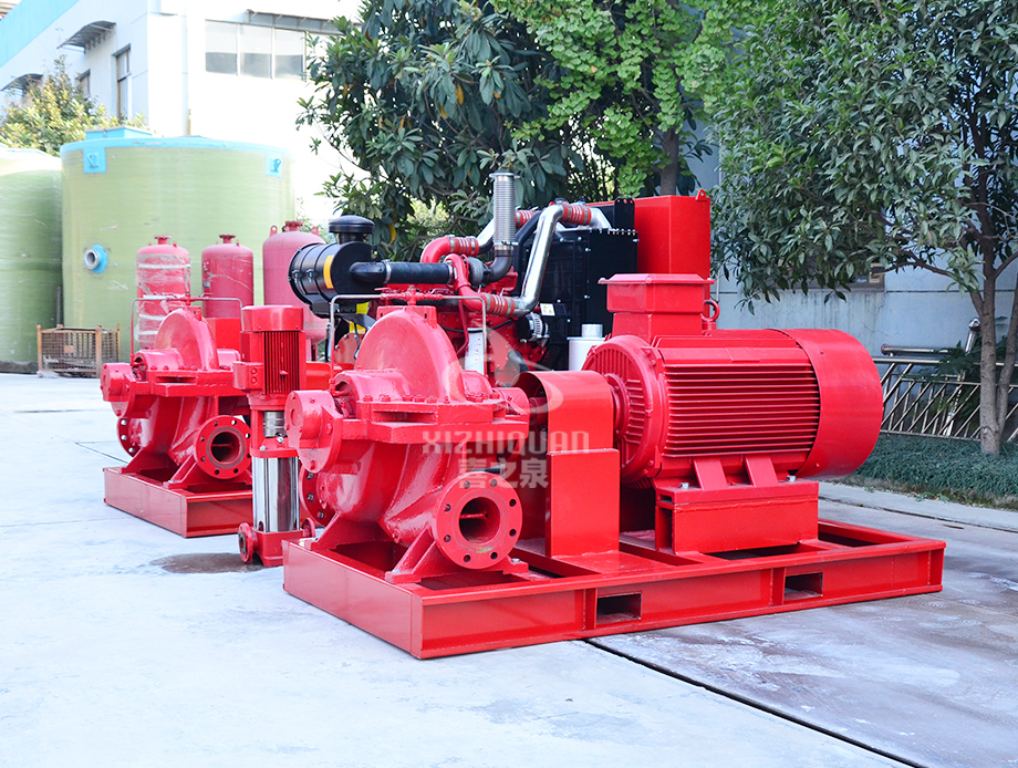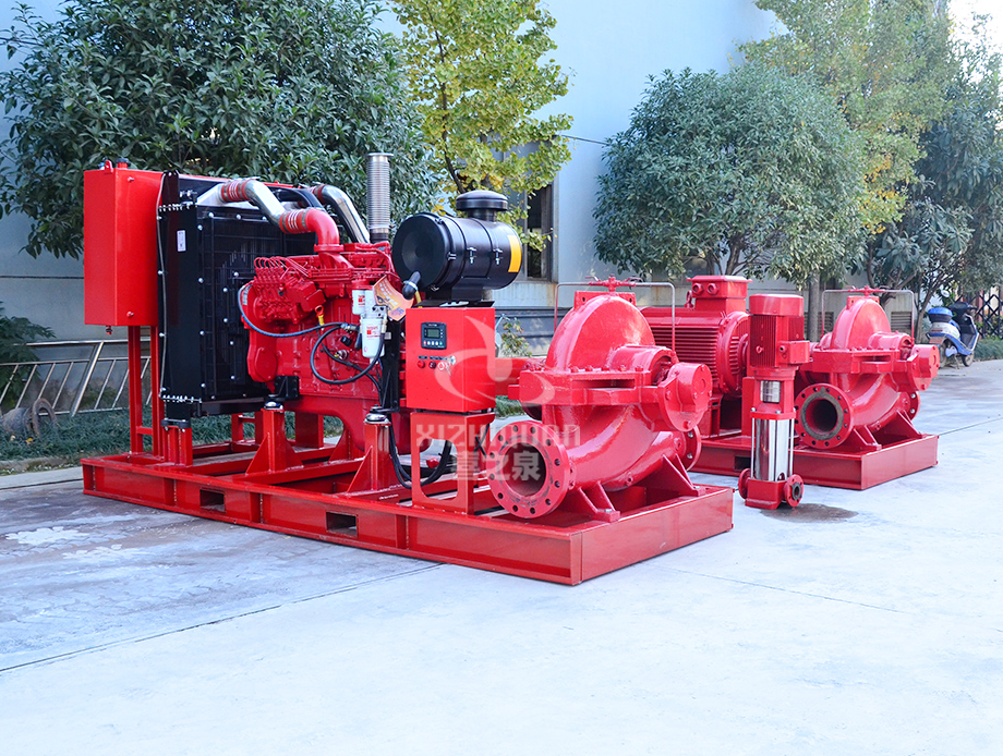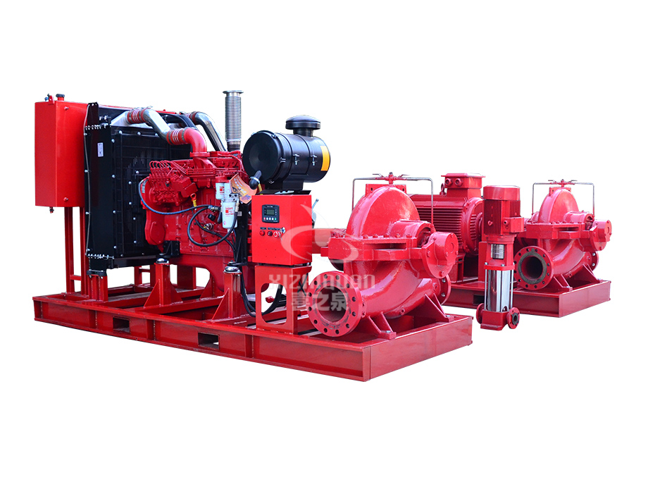 大型EDJ柴油機雙動力消防泵組是上海喜之泉泵閥有限公司嚴格安裝標準GB6245消防泵性能要求和試驗方法等標準研制開發的一種新型消防設備,該系列設備按所配用的消防泵