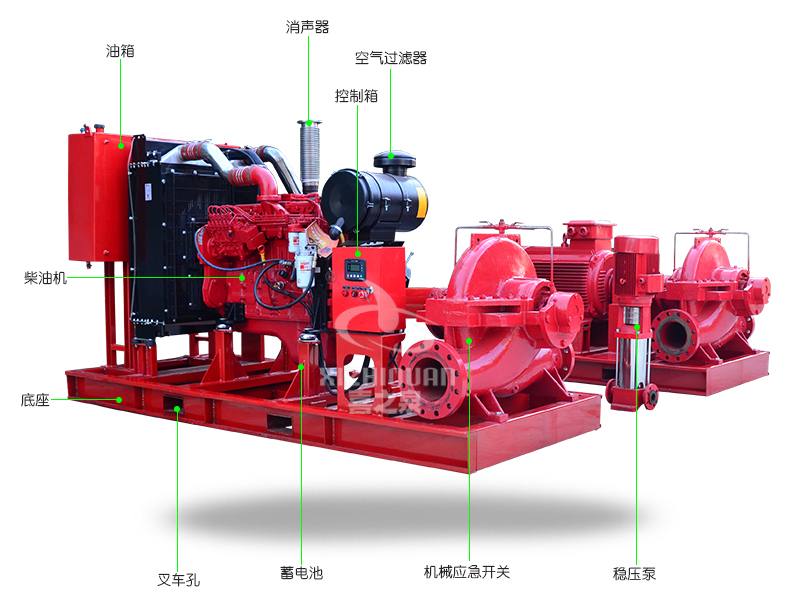 大型EDJ柴油機雙動力消防泵組適用于倉庫、碼頭、機場、石油、化工、電廠、液化氣、紡織、船舶、油輪等各種場合的消防供水和應急供水。