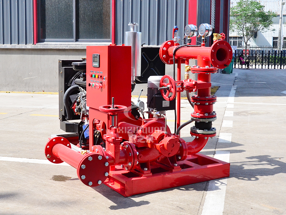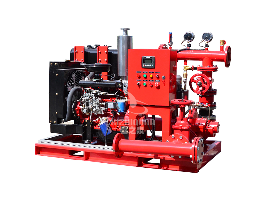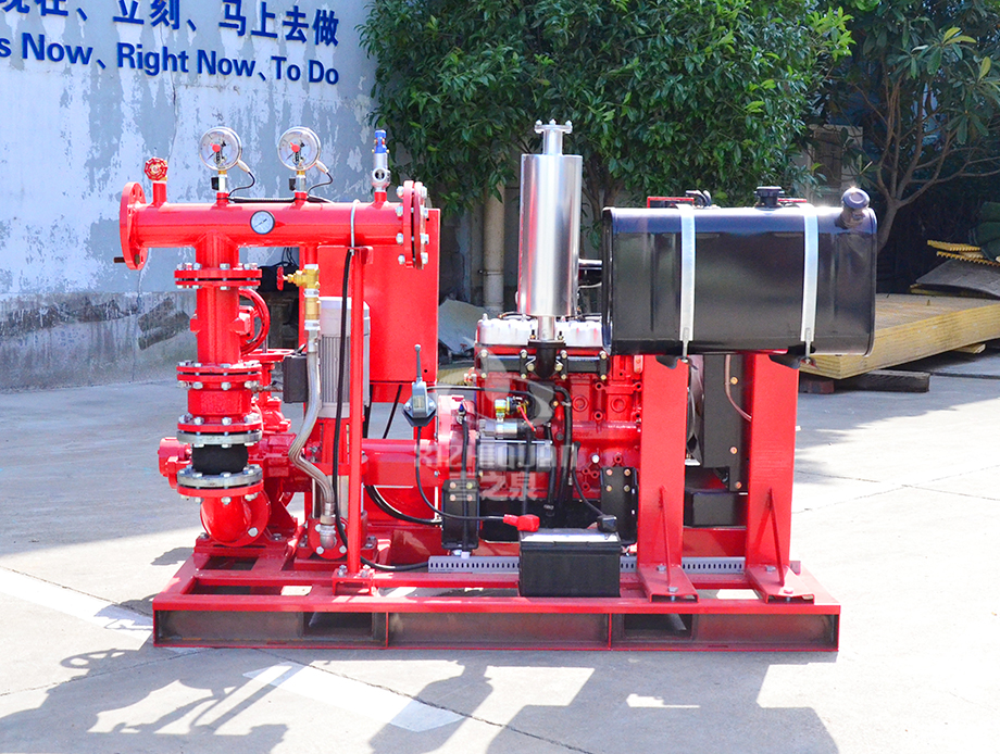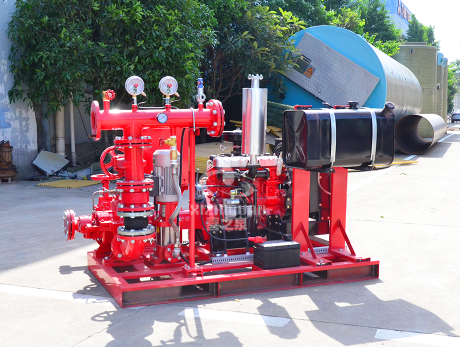 大型EDJ柴油機雙動力消防泵組是上海喜之泉泵閥有限公司嚴格安裝標準GB6245消防泵性能要求和試驗方法等標準研制開發的一種新型消防設備,該系列設備按所配用的消防泵