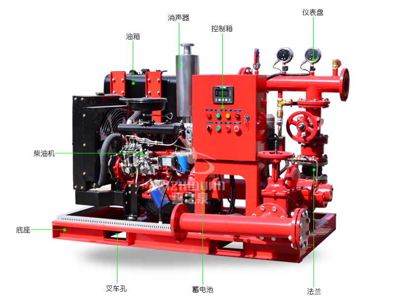 11、柴油機消防泵可與電動泵組、穩壓泵等組成自動消防給水系統。